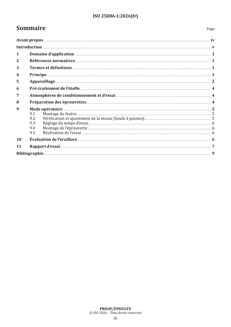 ISO/PRF 25086-1 - Textiles — Détermination de la résistance à l’éraillure (ou éraillage) des étoffes — Partie 1: Méthode d’essai à la masse (boule à pointes) Released:22. 12. 2025