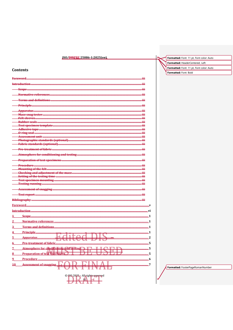 REDLINE ISO/PRF 25086-1 - Textiles — Determination of the snagging resistance of fabrics — Part 1: Mace (spiked ball) test method Released:12/2/2025