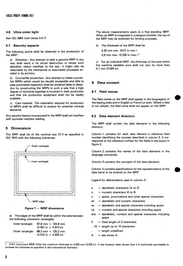 ISO 7501:1985 - Identification cards — Machine readable passport Released:8/22/1985