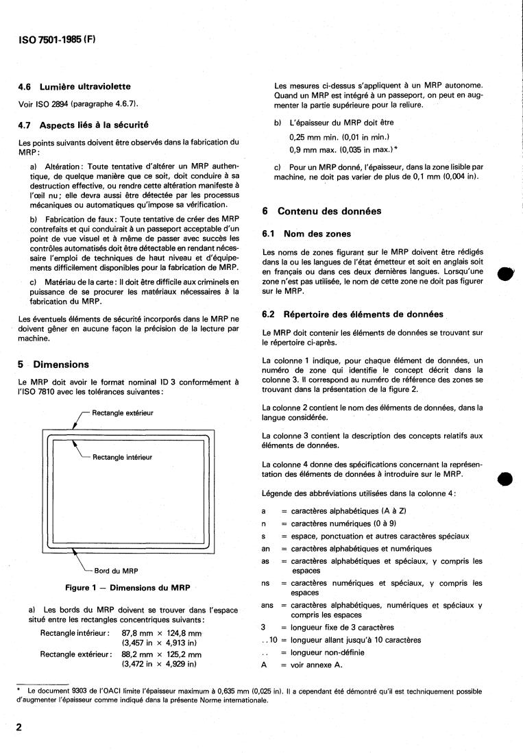 caractères zone de donnée (voir 6.2, légende de la colonne 4)