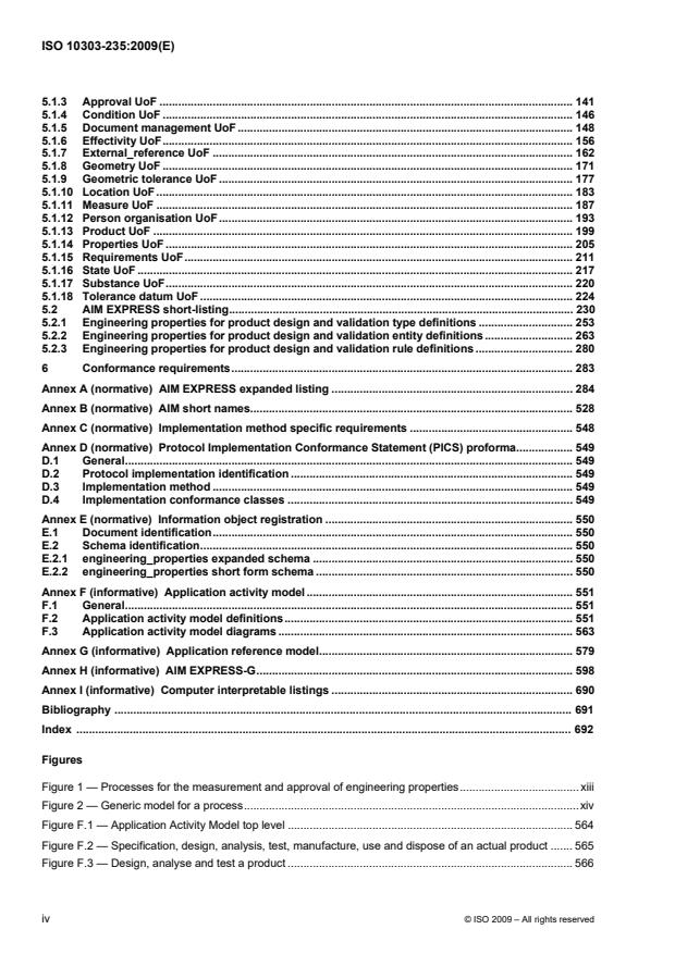 ISO 10303-235:2009 specifies the use of the integrated resources necessary for the scope and information requirements for the representation of engineering property data that are used for product design and product validation. The following are within the scope of ISO 10303-235:2009: descriptions and definitions of the manufactured product, the sample of the product and the testable version of the sample; description of the composition and substance of the product; description of the processes used in the measurement; descriptions of the data values produced by the measurement, with the specification of the conditions in which the data is valid; references to standards and other documents wherein sampling, measurement and other details of testing and measurement processes can be specified or described; descriptions and qualifications of the personnel and or organizations responsible for the measurement; specification of the requirements, conditions and tolerances to be satisfied in the measurement and a description of the outcome; descriptions of the locations of the measurement process and the effectivity of the results; descriptions of the approval that establishes the validity of the measurements and the use of the properties for product design and design validation. The following are outside the scope of ISO 10303-235:2009: data describing rules, guidelines and expert knowledge in the testing of products; names of properties and test methods; data describing why a decision was made to use a particular process; scheduling data for measurement processes; algorithms used for data evaluation and data processing.
