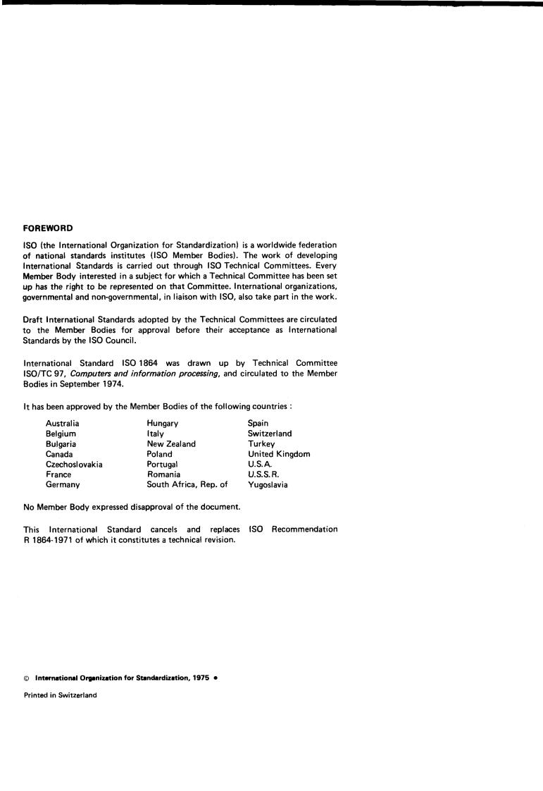 UDC 681.327.64 Ref. No. IS0 1864-1975 (E)