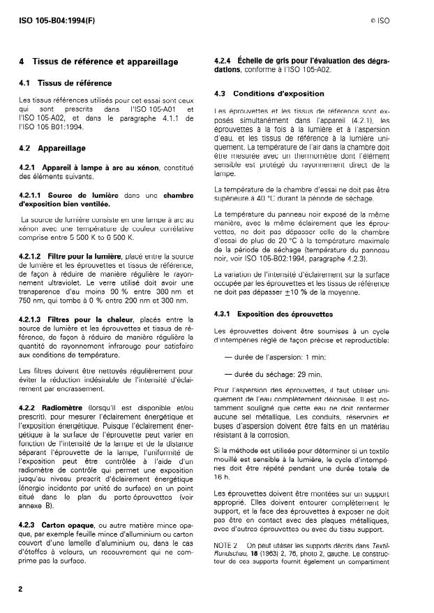 ISO 105-B04:1994 - Textiles -- Essais de solidité des teintures