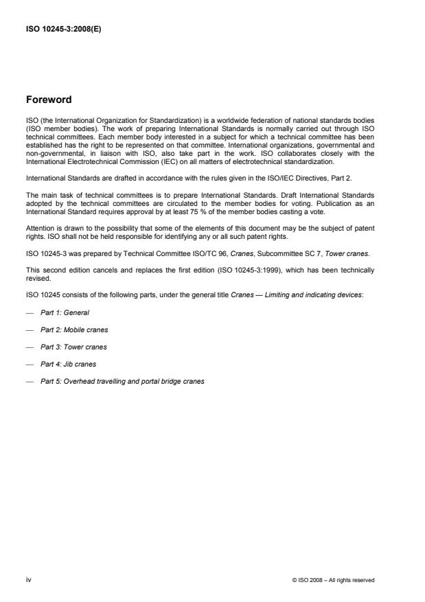 ISO 10245-3 подготовлен Техническим комитетом ISO/ТС 96, Краны, Подкомитетом SC 7, Башенные