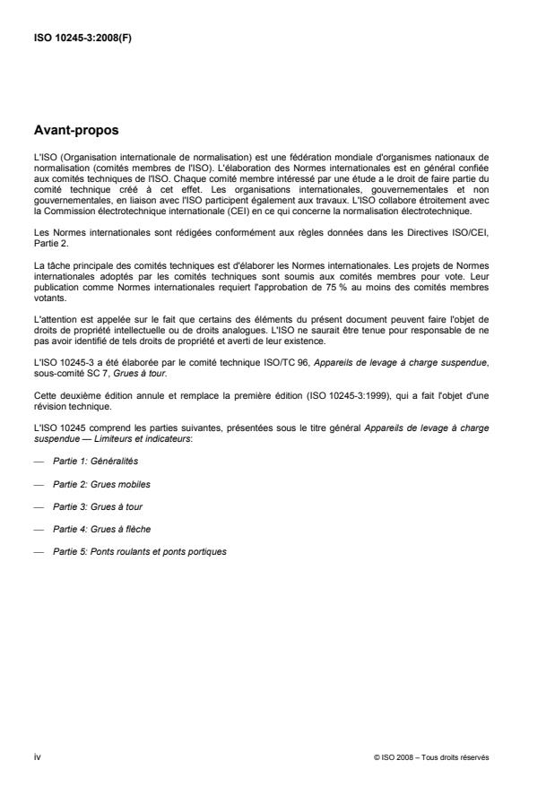 ISO 10245-3 was prepared by Technical Committee ISO/TC 96, Cranes, Subcommittee SC 7, Tower cranes.