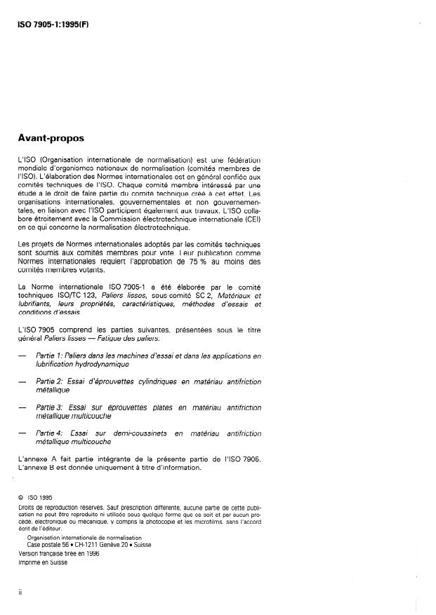 ISO 7905-1:1995 - Paliers lisses -- Fatigue des paliers