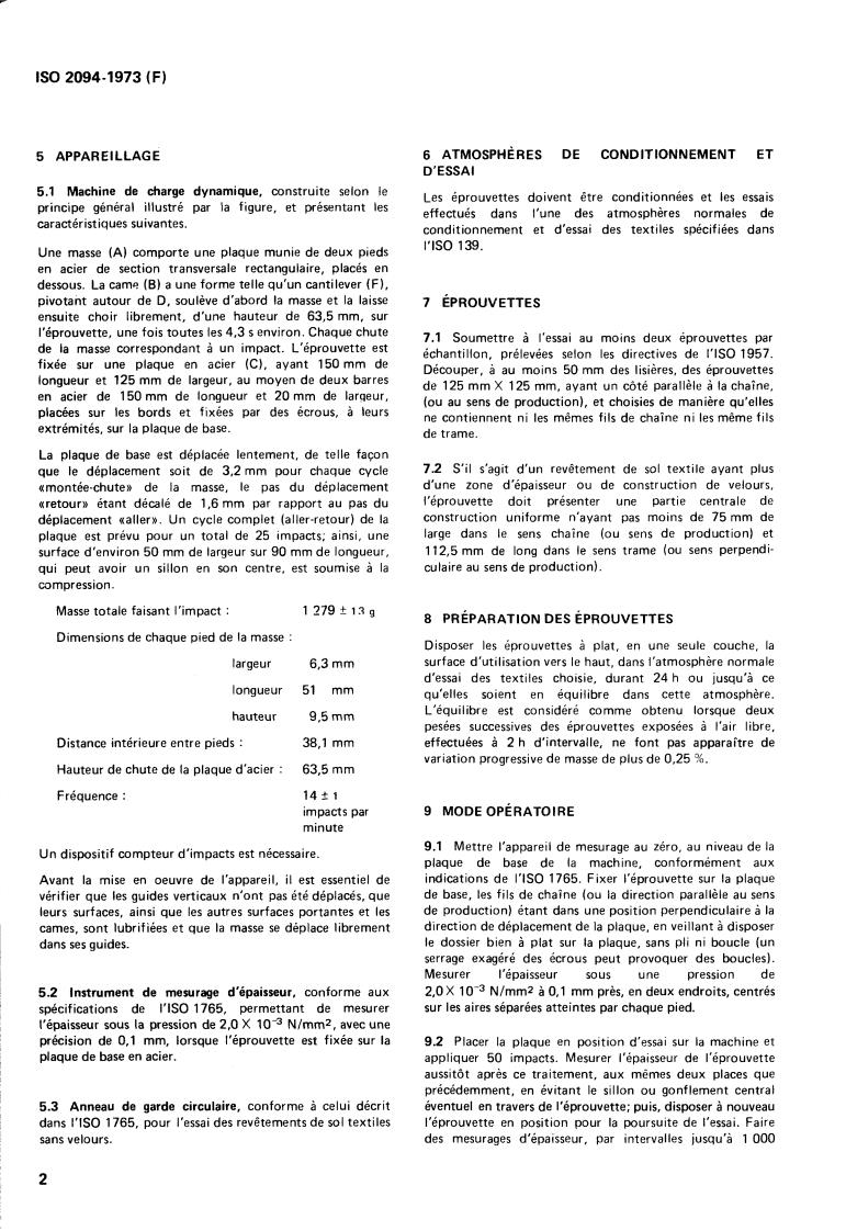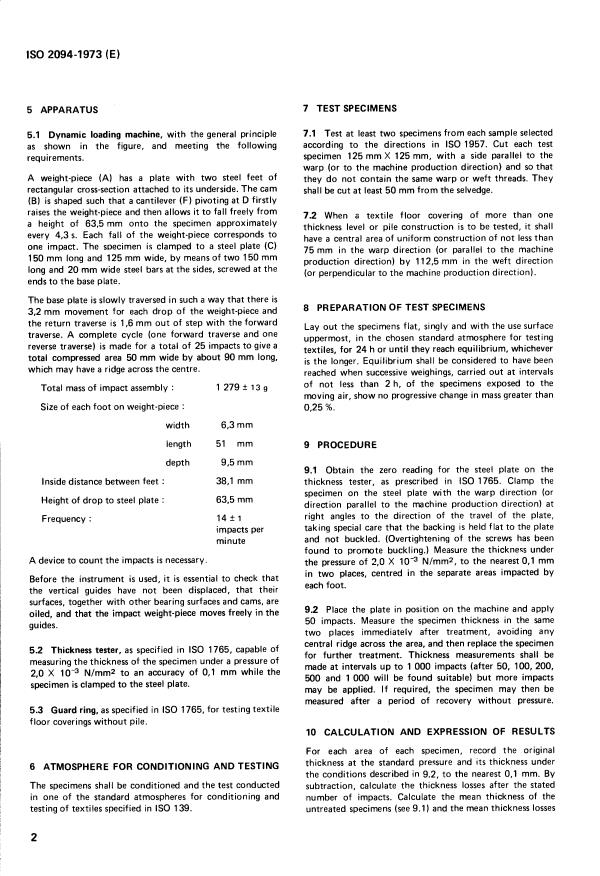 ISO 2094:1973 - Textile floor coverings -- Determination of thickness loss under dynamic loading