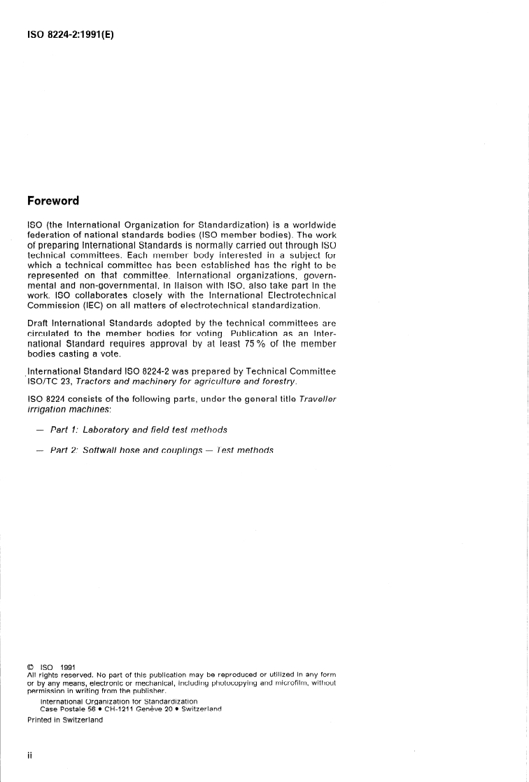 ISO 8224-2:1991 - Traveller irrigation machines — Part 2: Softwall hose and couplings — Test methods Released:1/24/1991