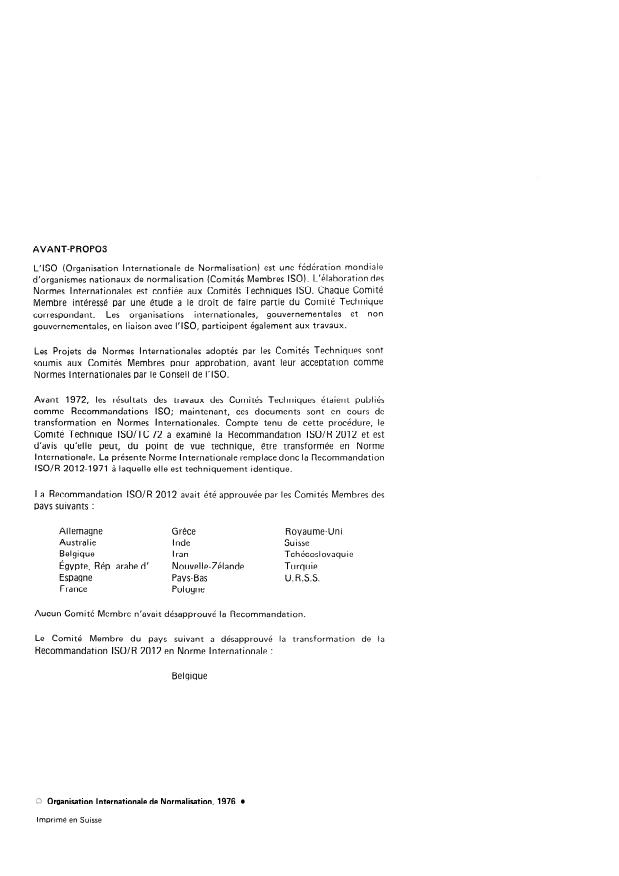 La Recommandation ISO/R 2012 avait été