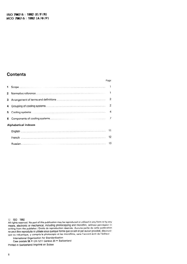 ISO 7967-5:1992 is a standard published by the International Organization for Standardization (ISO). Its full title is "Reciprocating internal combustion engines — Vocabulary of components and systems — Part 5: Cooling systems". This standard covers: Includes 31 relevant terms and definitions in English, French and Russian listed as a table and, at the end, in alphabetical indices. Where necessary, illustrations are given which show the typical shape of the component.