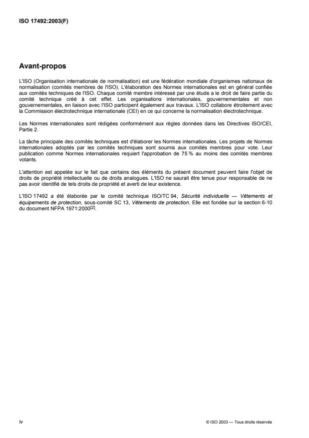 ISO 17492:2003 is classified under the following ICS (International Classification for Standards) categories: 13.340.10 - Protective clothing. The ICS classification helps identify the subject area and facilitates finding related standards.