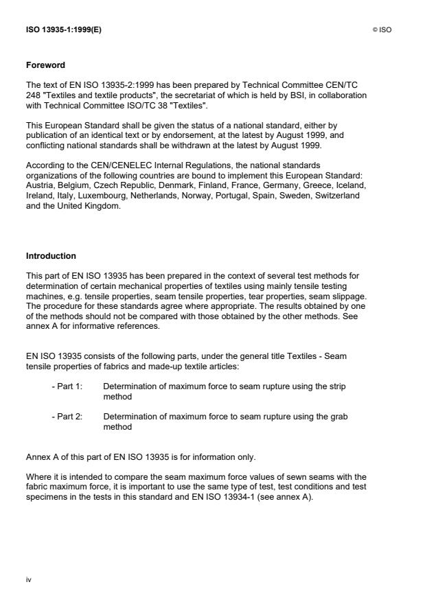 Le texte de l’EN ISO 13935-1:1999 a été élaboré par le Comité Technique CEN/TC 248 "Textiles et