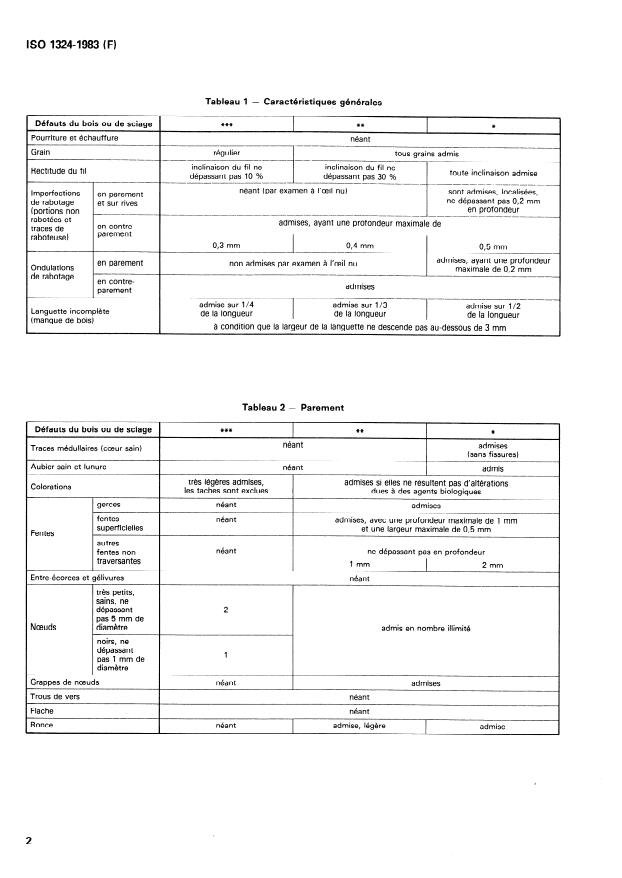porter plus de défauts que ceux spécifiés aux tableaux 1, 2 et 3,