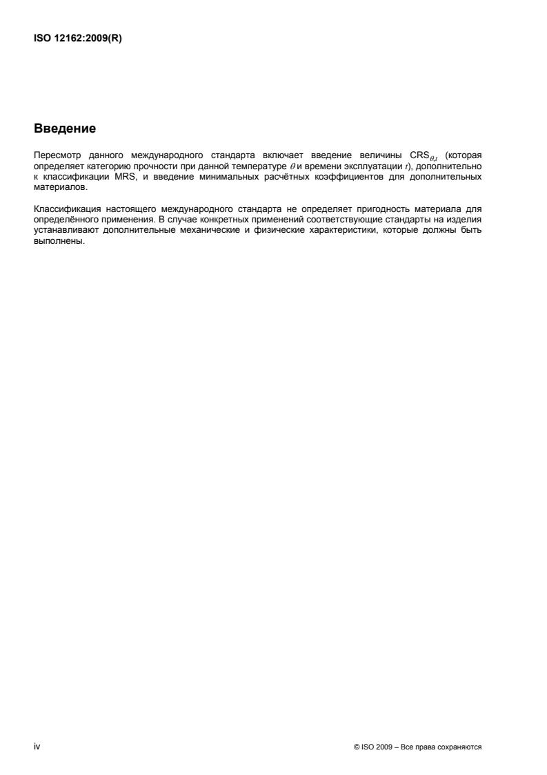 Keywords: ISO 12162:2009, thermoplastics materials, MRS, CRS, design coefficient, design stress, long‑term hydrostatic strength, pipes and fittings, pressure applications, ISO 9080.
