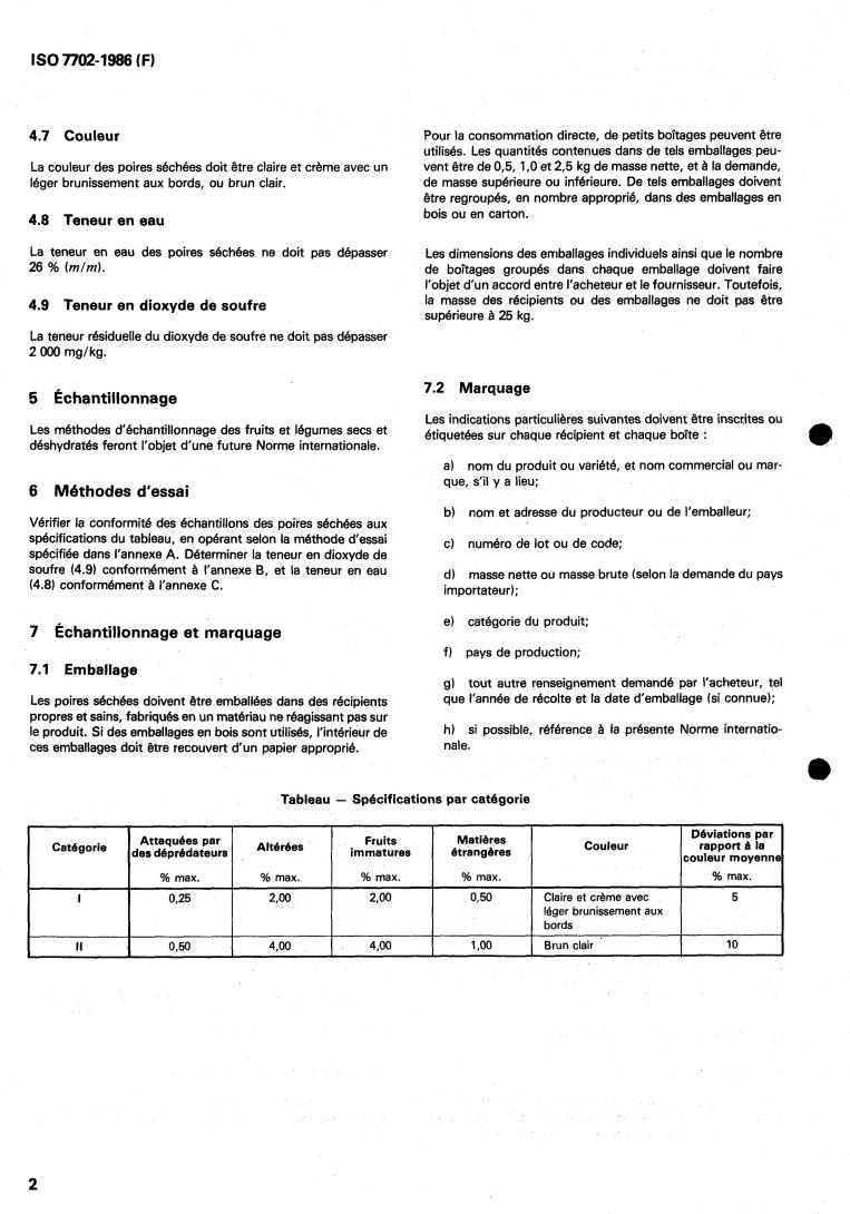 Descriptors : agricultural products, fruits, dried fruits, pears, specification, tests, packing, marking.