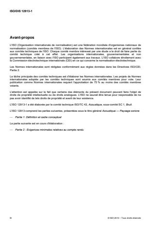 L'ISO 12913 comprend les parties suivantes, présentées sous le titre général Acoustique — Paysage sonore: