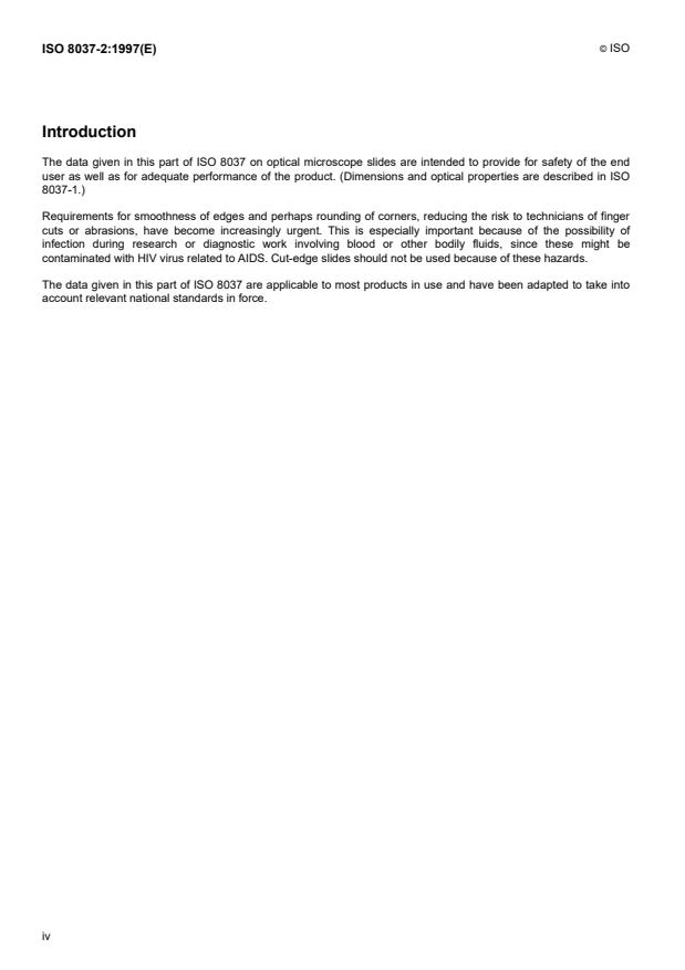 Keywords: ISO 8037-2, microscope slides, silicate slides, quality of material, standards of finish, packaging, transmitted light microscopy, AQL, sampling, edge finish, birefringence, wettability.
