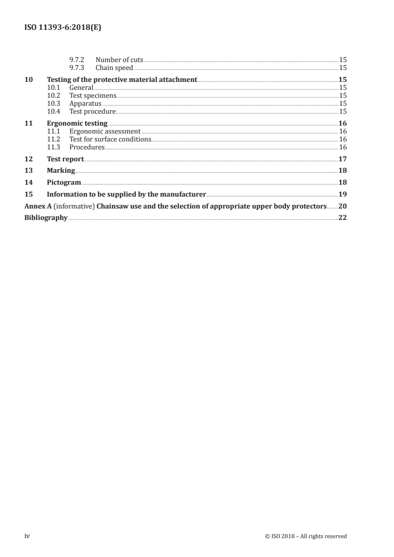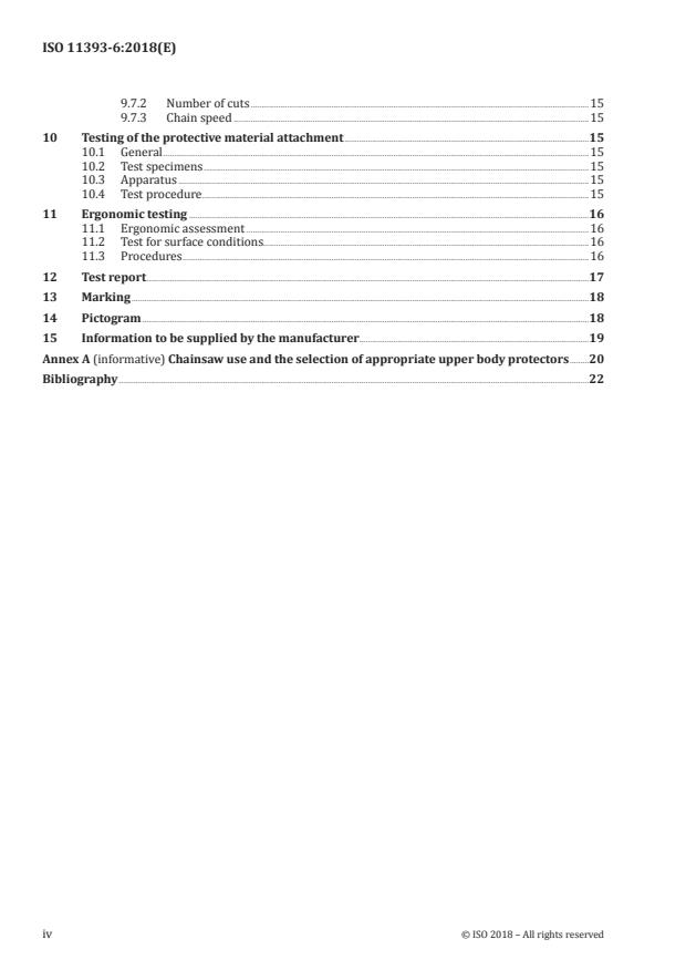 ISO 11393-6:2018 - Protective clothing for users of hand-held chainsaws — Part 6: Performance requirements and test methods for upper body protectors Released:11/4/2019