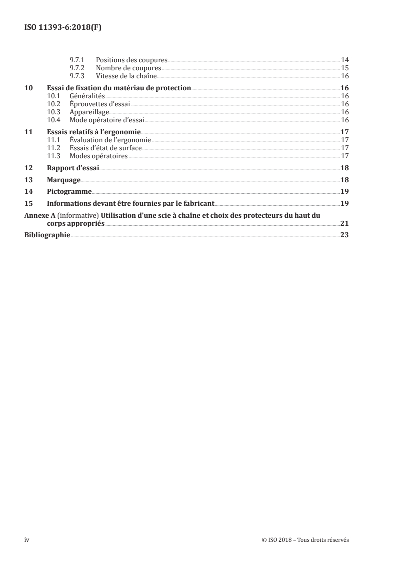 ISO 11393-6:2018 - Vetements de protection pour utilisateurs de scies a chaîne tenues a la main