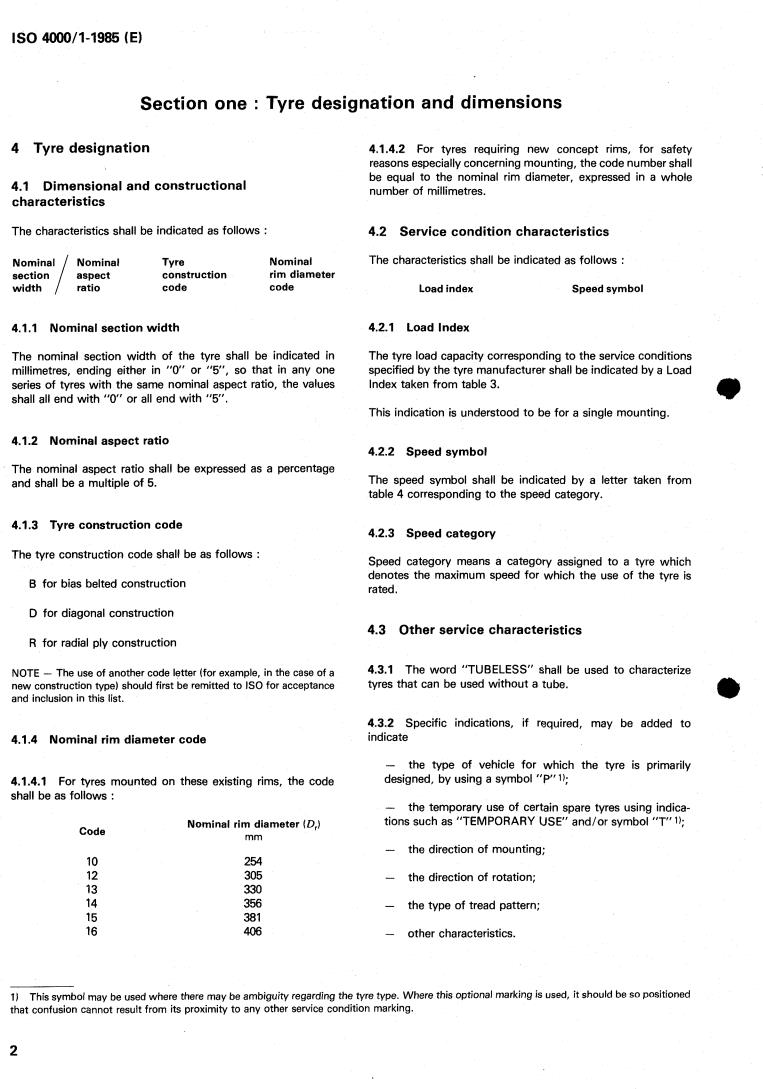 ISO 4000-1:1985 - Passenger car tyres and rims — Part 1: Tyres (metric series) Released:5/30/1985