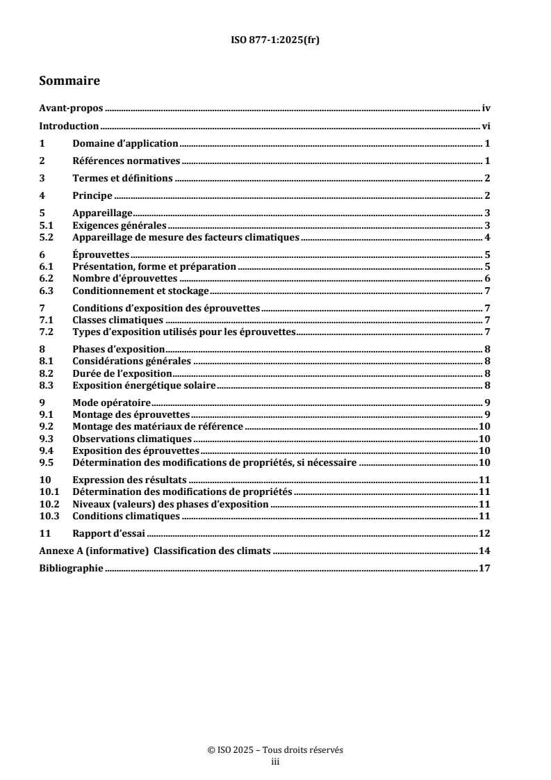 - Results and reporting: how to express changes in properties, exposure levels, climatic conditions and required content of the test report; Annex A provides a climate classification framework.