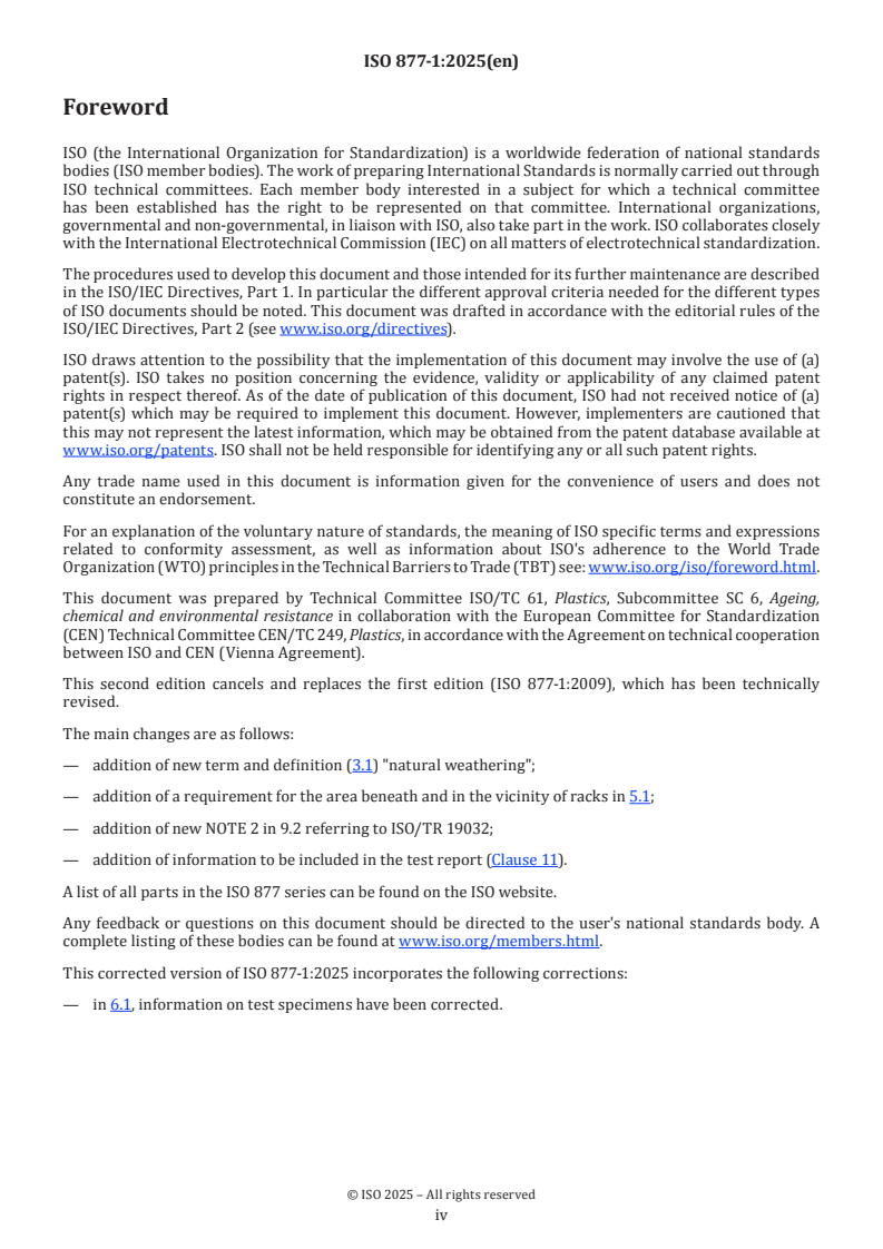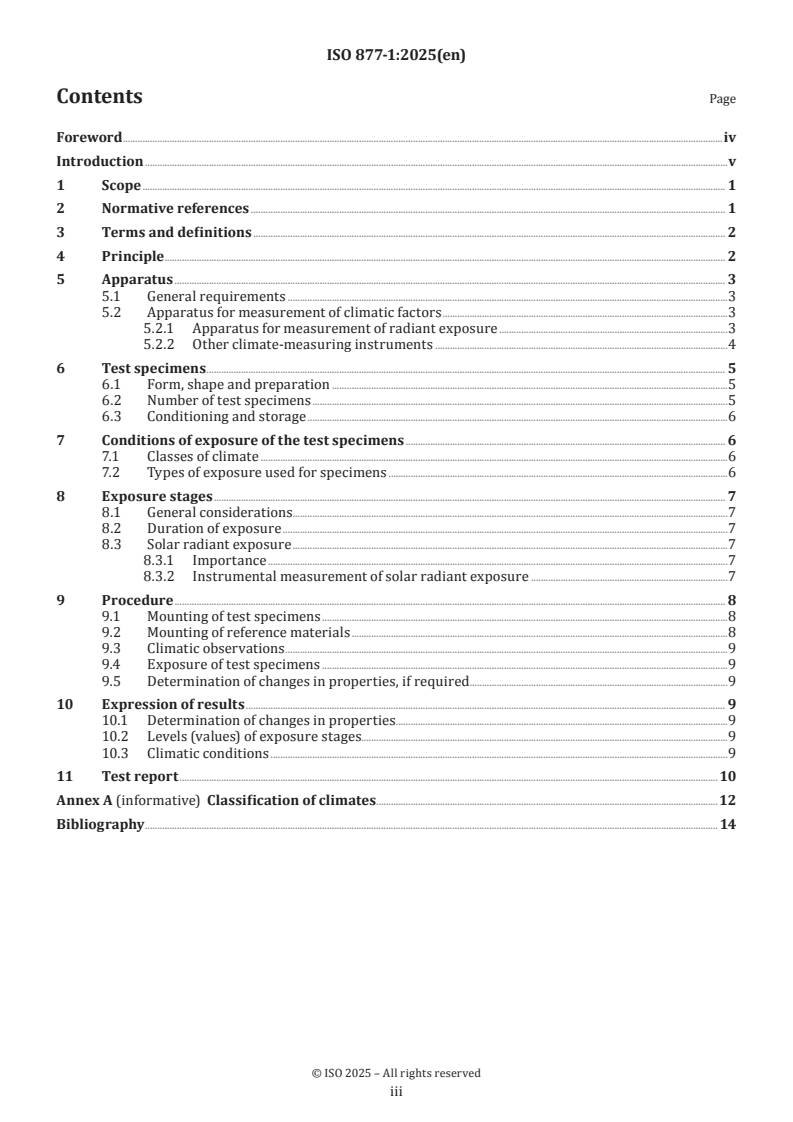 Keywords: ISO 877-1:2025, plastics, solar radiation, natural weathering, radiant exposure, outdoor exposure, weathering tests, test methods.