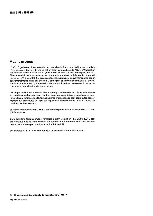 ISO 3178:1988 - Câbles en acier d'usages courants -- Conditions de réception