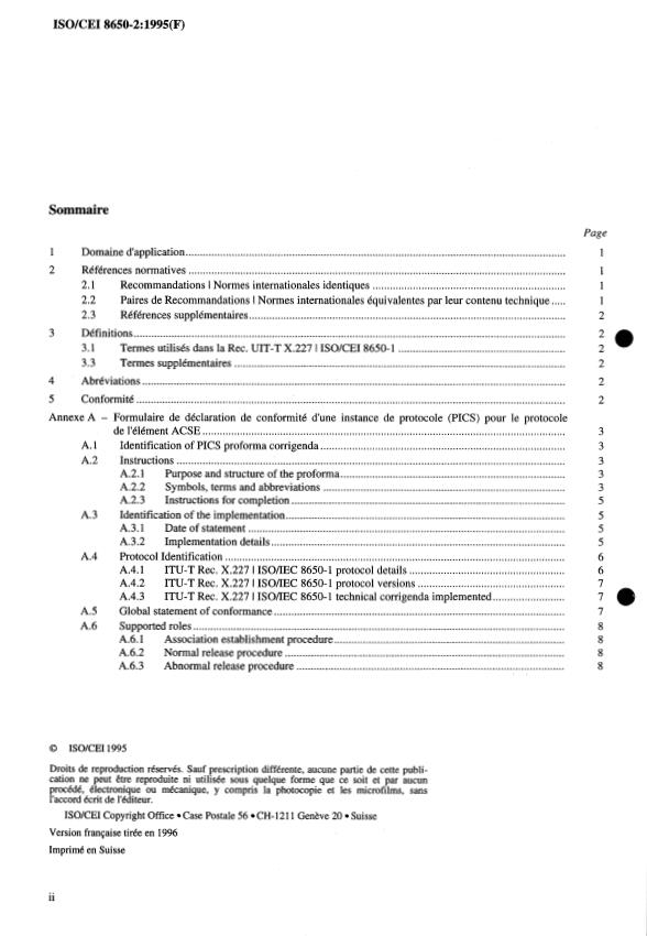 ISO/CEI 8650- 1. Ce formulaire PICS correspond aux prescriptions et aux directives pertinentes données dans la