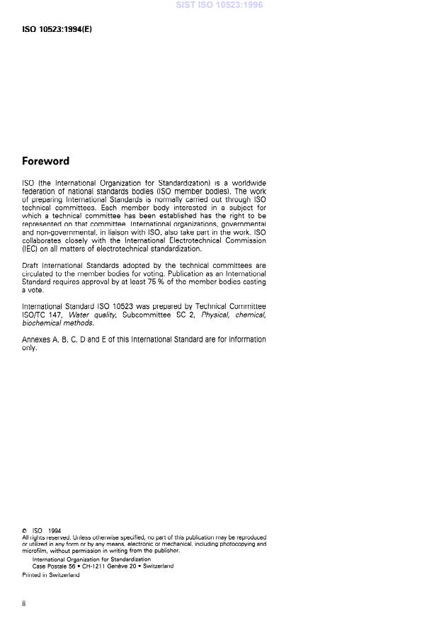 International Standard ISO 10523 was prepared by Technical Committee