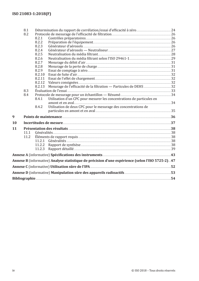 Le présent document spécifie les instruments et modes opératoires d'essai à utiliser pour la détermination des efficacités fractionnelles de filtration des médias filtrants plans par rapport à des nanoparticules en suspension dans l'air dans la plage granulométrique de 20 nm à 500 nm. Les méthodes d'essai décrites dans le présent document sont limitées aux particules sphériques ou quasi-sphériques afin d'éviter toute incertitude liée à la forme des particules.