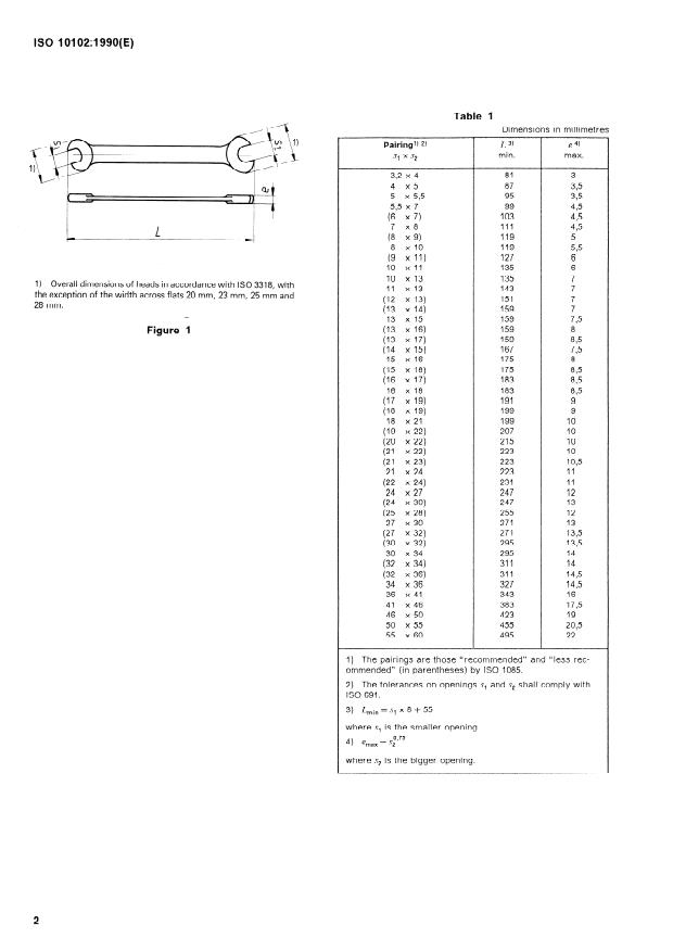 ISO 10102:1990 is a standard published by the International Organization for Standardization (ISO). Its full title is "Assembly tools for screws and nuts — Double-headed open-ended engineers' wrenches". This standard covers: Assembly tools for screws and nuts — Double-headed open-ended engineers' wrenches