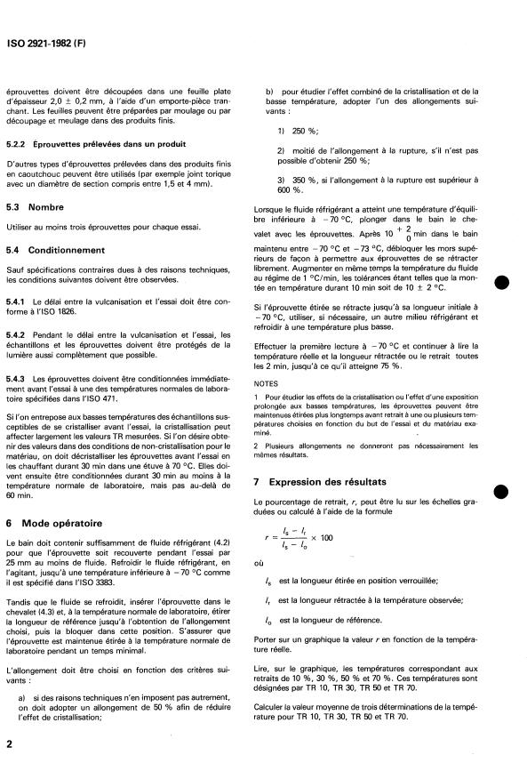ISO 2921:1982 - Caoutchouc vulcanisé -- Détermination des caractéristiques a basse température -- Méthode température-retrait (essai TR)