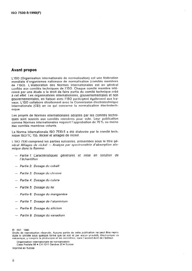 ISO 7530-5:1990 - Alliages de nickel -- Analyse par spectrométrie d'absorption atomique dans la flamme