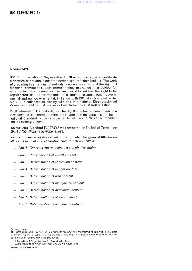 ISO 7530-5:1990 - Nickel alloys -- Flame atomic absorption spectrometric analysis