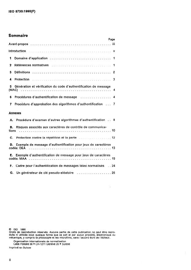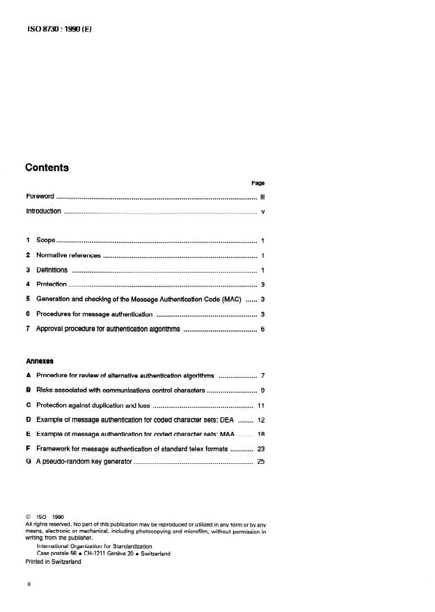 ISO 8730:1990 is a standard published by the International Organization for Standardization (ISO). Its full title is "Banking - Requirements for message authentication (wholesale)". This standard covers: Operation implies acceptance of the responsibility for their MAC (message authentication code) by the correspondent financial institutions. Specifies the method by which authentication algorithms are to be approved for inclusion in ISO 8731. It specifies a technique for protecting either the whole of the message or specified elements within it. The authentication of messages is independent of the transmission process used. This IS is designated for use with symmetric algorithms where sender and receiver use the same key.