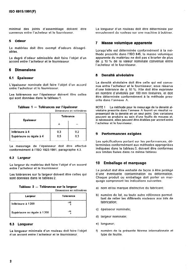 ISO 1798: 1983, Matériaux polymères alvéolaires sou- méthode d’assemblage utilisés ne doivent pas dé-