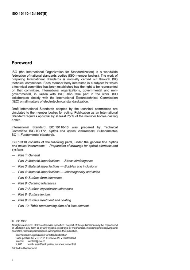ISO 10110-13:1997 - Optics and optical instruments -- Preparation of drawings for optical elements and systems