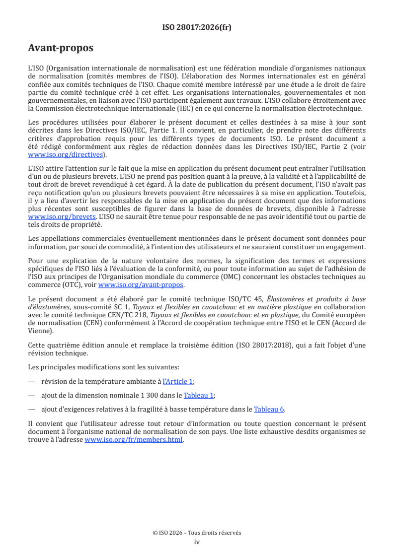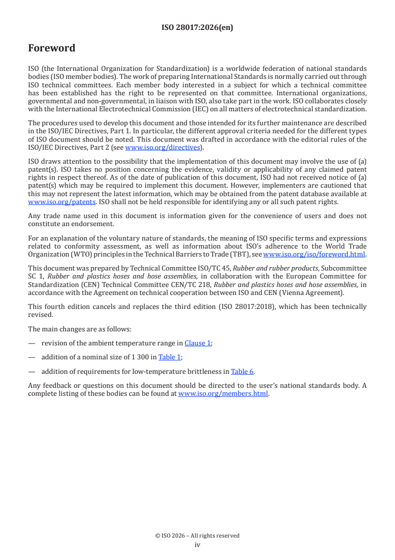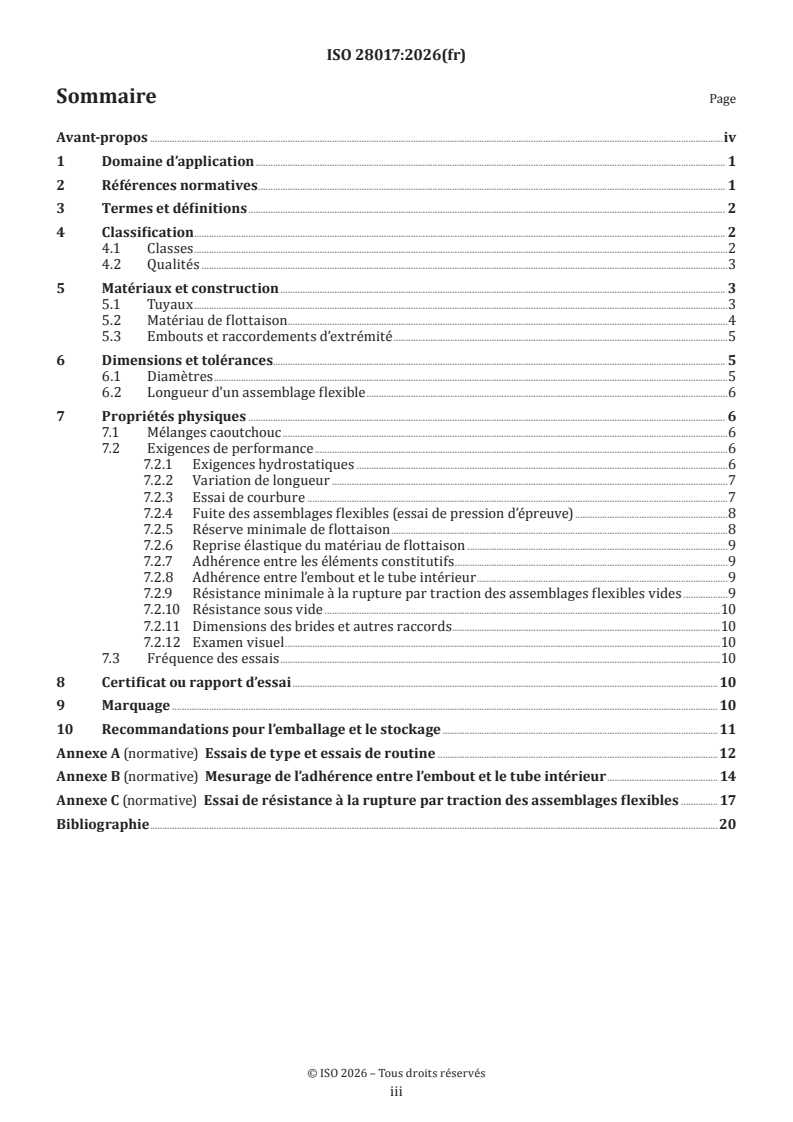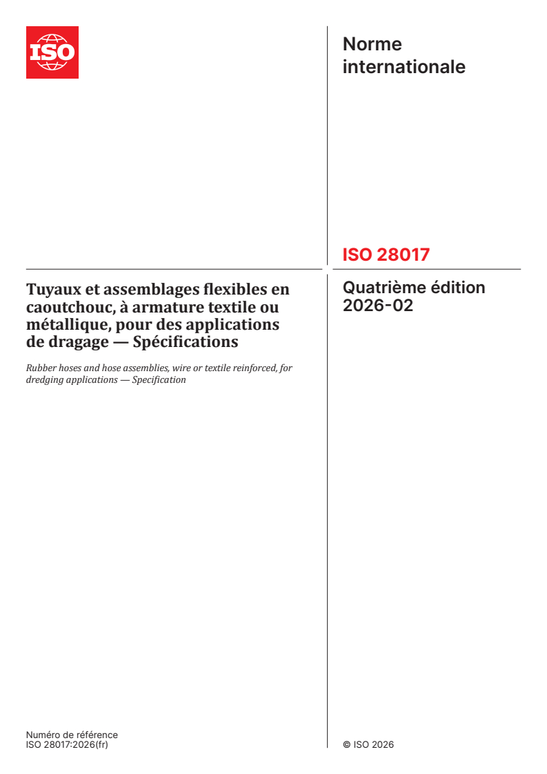 ISO 28017:2026 - Tuyaux et assemblages flexibles en caoutchouc, à armature textile ou métallique, pour des applications de dragage — Spécifications