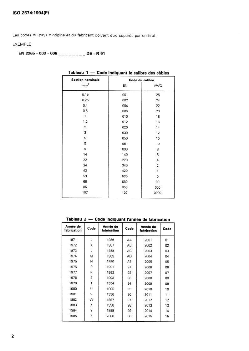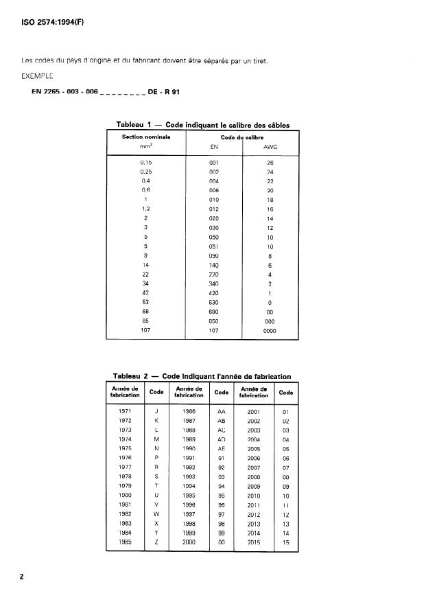 - année de fabrication [une ou deux lettre(s)-code], comme spécifié dans le tableau 2.