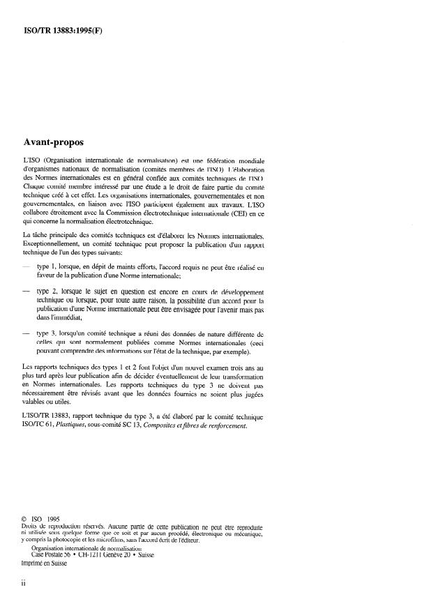 ISO/TR 13883:1995 is classified under the following ICS (International Classification for Standards) categories: 83.120 - Reinforced plastics. The ICS classification helps identify the subject area and facilitates finding related standards.