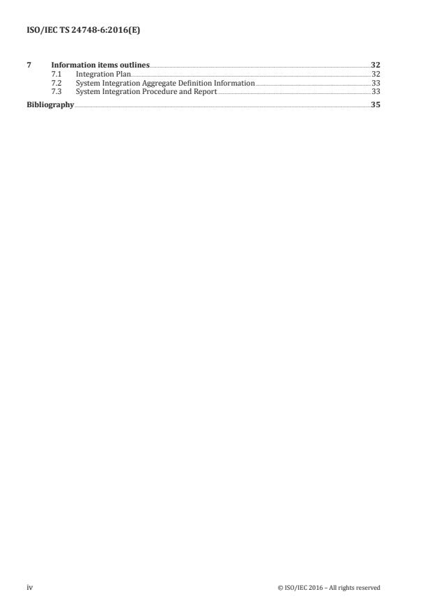 ISO/IEC TS 24748-6:2016 - specifies activities and processes to be implemented for engineering the integration of systems-of-interest throughout the life cycle (systems made of products and/or services; see Note 1), - provides guidance for the integration process and its relationships to other system life cycle processes as described in ISO/IEC/IEEE 15288, - specifies the information items to be produced through the implementation of the integration engineering (integration process and its relationships to other system life cycle processes), - specifies the contents of the information items, and - provides guidelines for the format of the information items. ISO/IEC TS 24748-6:2016 can be applied to - those who use or plan to use ISO/IEC/IEEE 15288 on projects dealing with man-made systems, software-intensive systems, products and services related to those systems, regardless of project scope, methodology, size or complexity, and - anyone performing integration engineering activities to aid in ensuring that the application of the integration process and its relationships to other system life cycle processes conform to ISO/IEC/IEEE 15288.