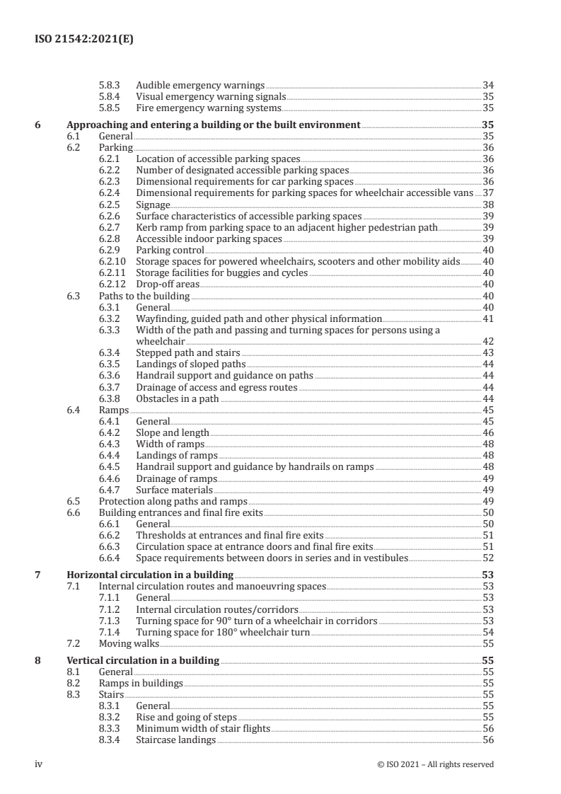 Keywords: ISO 21542:2021, accessibility, built environment, usability, building construction, ramps, signage, tactile, wheelchair access, wayfinding, universal design.