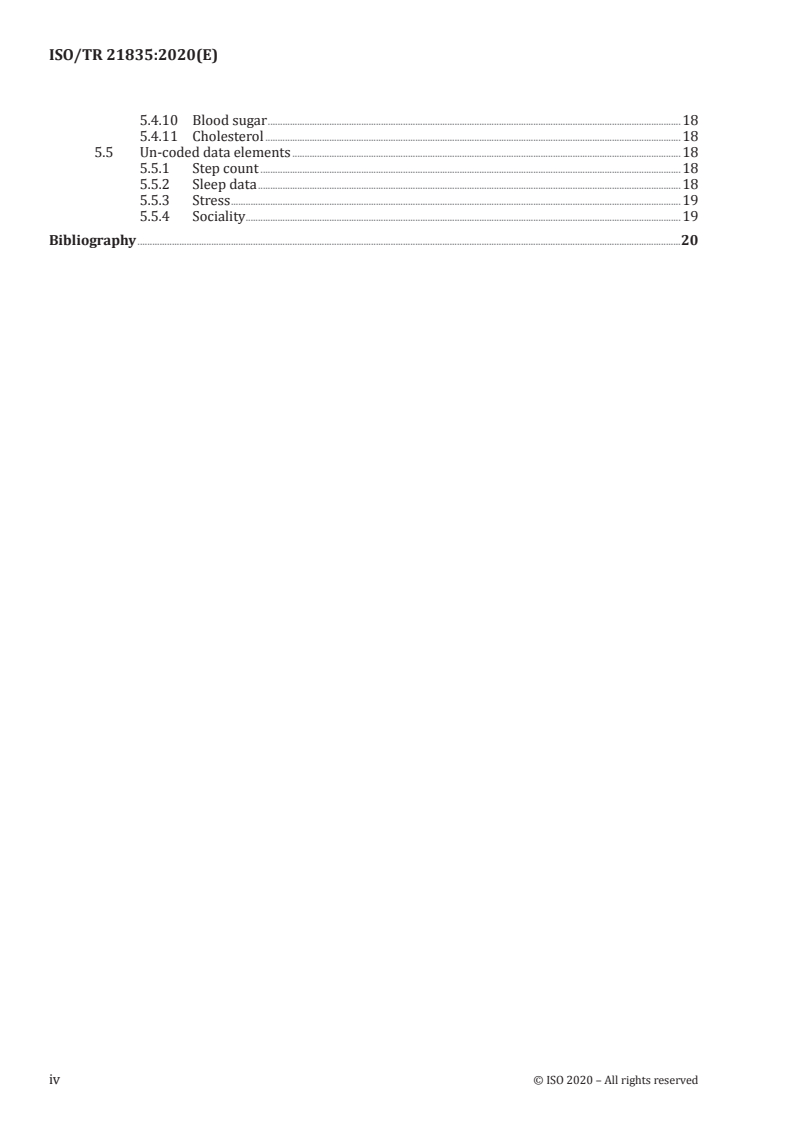 ISO/TR 21835:2020 is a technical report published by the International Organization for Standardization (ISO). Its full title is "Health informatics - Personal health data generated on a daily basis". This standard covers: This document provides an environmental scan of common data elements that are captured through various modalities such as cell phones, smart phones, mobile applications and remote monitoring devices that are combined with EHRs, patient portals and PHR systems which can ultimately be applicable to a variety of healthcare service environments. The Health-related data can be used to supplement existing clinical data, filling in gaps in information and providing a more comprehensive picture of ongoing patient healthcare.