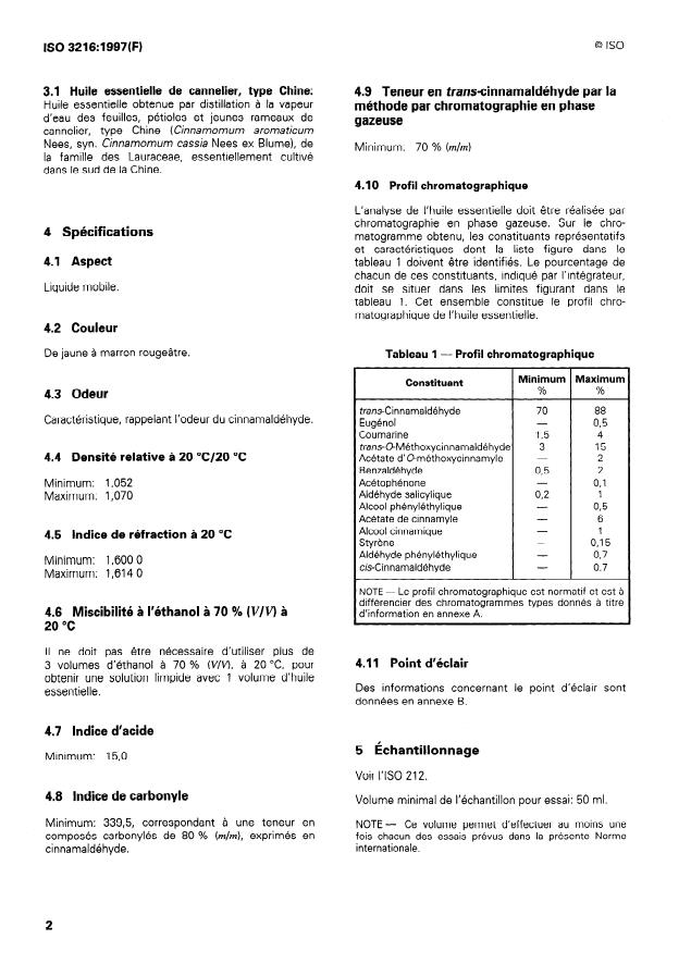 moment donné. ISO 11025:- 3) Huile essentielle de cannelier, type