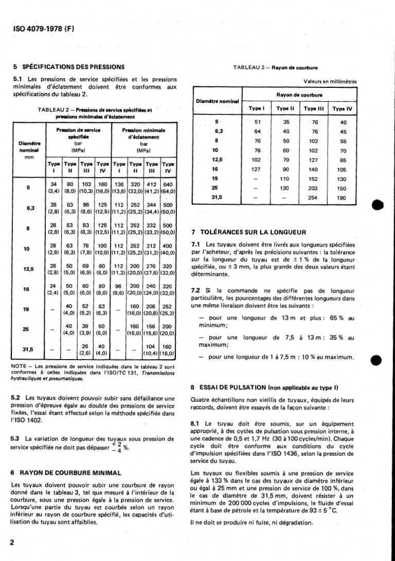 5 SPÉCIFICATIONS DES PRESSIONS TABLEAU 3 - Rayon de courbure