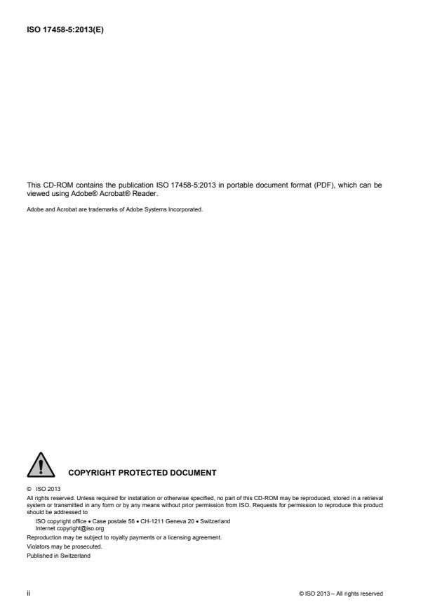 This CD-ROM contains the publication ISO 17458-5:2013 in portable document format (PDF), which can be