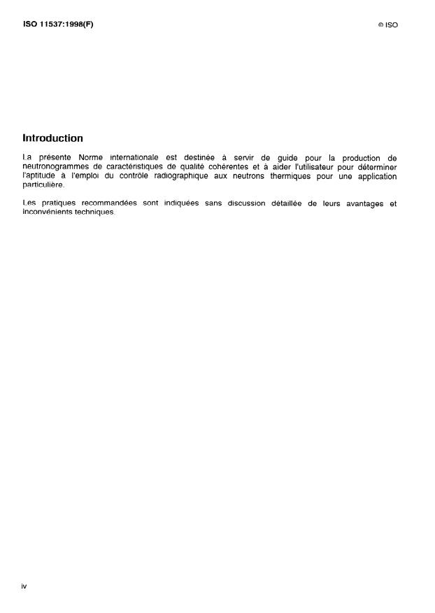 ISO 11537:1998 - Essais non destructifs -- Essai de neutronographie thermique -- Principes généraux et regles de base