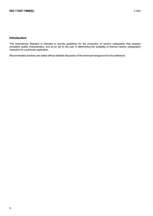 ISO 11537:1998 is a standard published by the International Organization for Standardization (ISO). Its full title is "Non-destructive testing — Thermal neutron radiographic testing — General principles and basic rules". This standard covers: Non-destructive testing — Thermal neutron radiographic testing — General principles and basic rules
