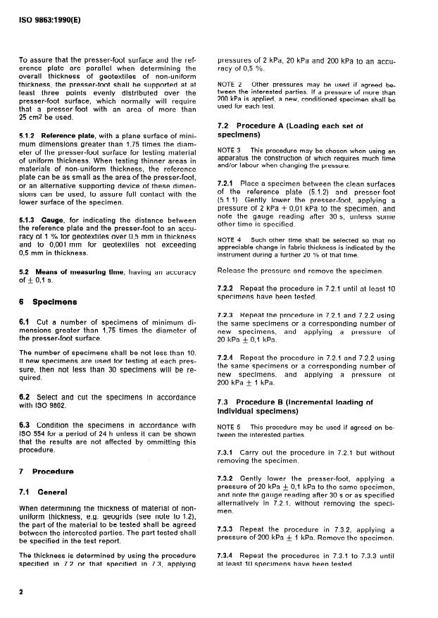 ISO 9863:1990 is a standard published by the International Organization for Standardization (ISO). Its full title is "Geotextiles — Determination of thickness at specified pressures". This standard covers: Geotextiles — Determination of thickness at specified pressures