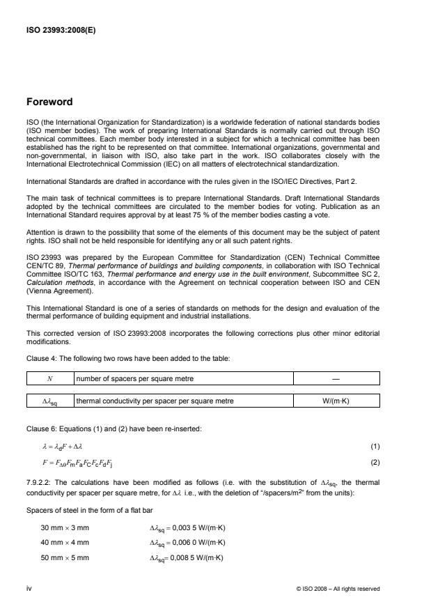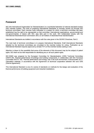 ISO 23993:2008 provides methods to derive design thermal conductivity values from declared thermal conductivities for thermal insulation used in building equipment and industrial installations. The standard covers operating conditions from −200 °C to +800 °C and defines a system of conversion factors to account for real-world influences on insulation performance. Where applicable, an additional term is included to represent regular insulation-related thermal bridges (for example, spacers).